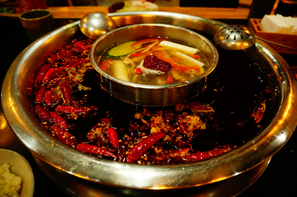 De meest bekende is waarschijnlijk Sichuan hotpot, die verdovend en pittig is. Je hebt waarschijnlijk foto’s gezien en de gedachte om dit te eten kan enigszins intimiderend zijn. De provincie Sichuan in China staat algemeen bekend om zijn pittige keuken. Sichuan hot pot is ook synoniem met heet en pittig dankzij de peperkorrels.